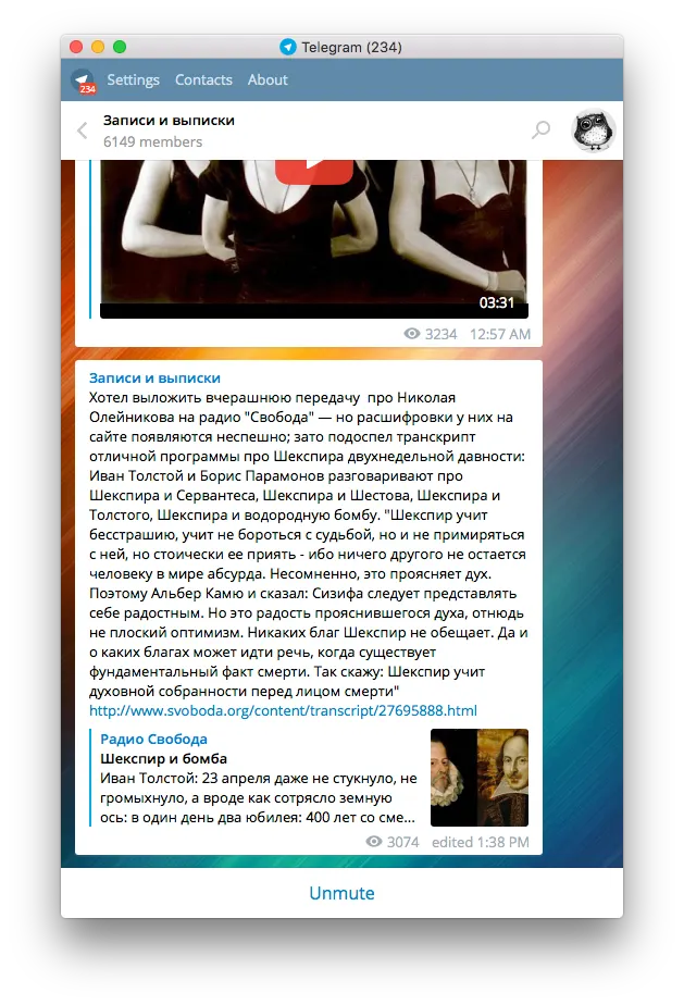Толще твиттера — как минимум, у этого канала оригинальное название. Контент тоже качественный.