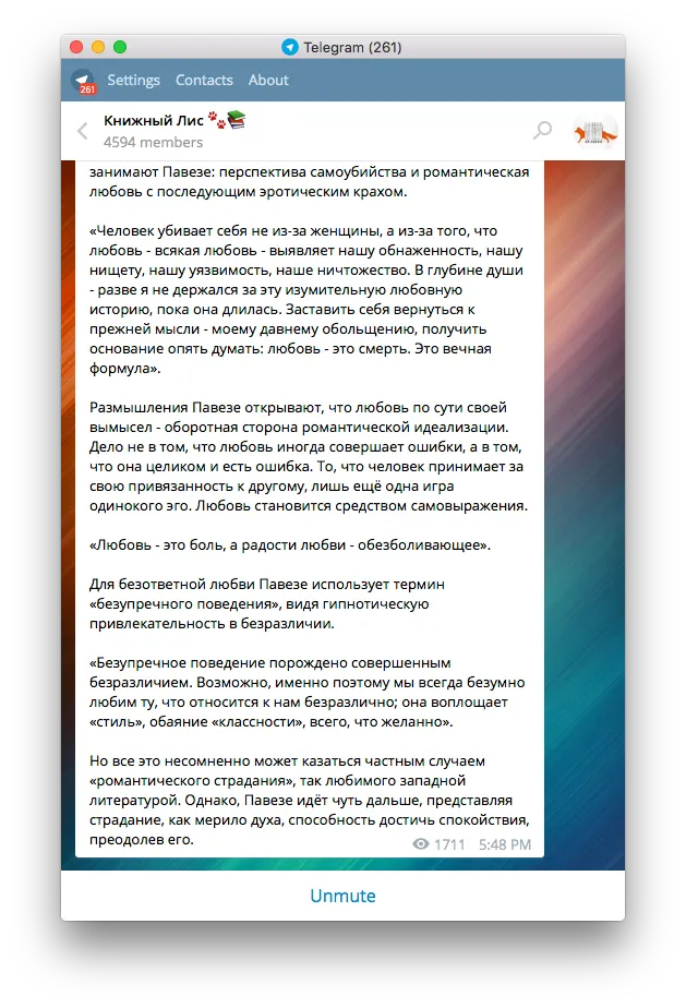 Project Knigi — не самый информативный канал – его автор вряд ли особо заморачивается насчет чтения и анализа произведений. Зато там есть цитаты.