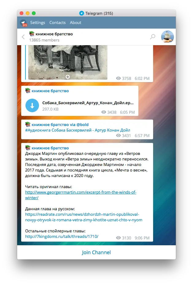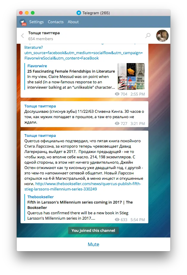 Flibusta — как же не упомянуть самый большой книжный канал отечественного Телеграма? Ничего привлекательного я в нем не вижу, но книжки туда действительно выкладывают.