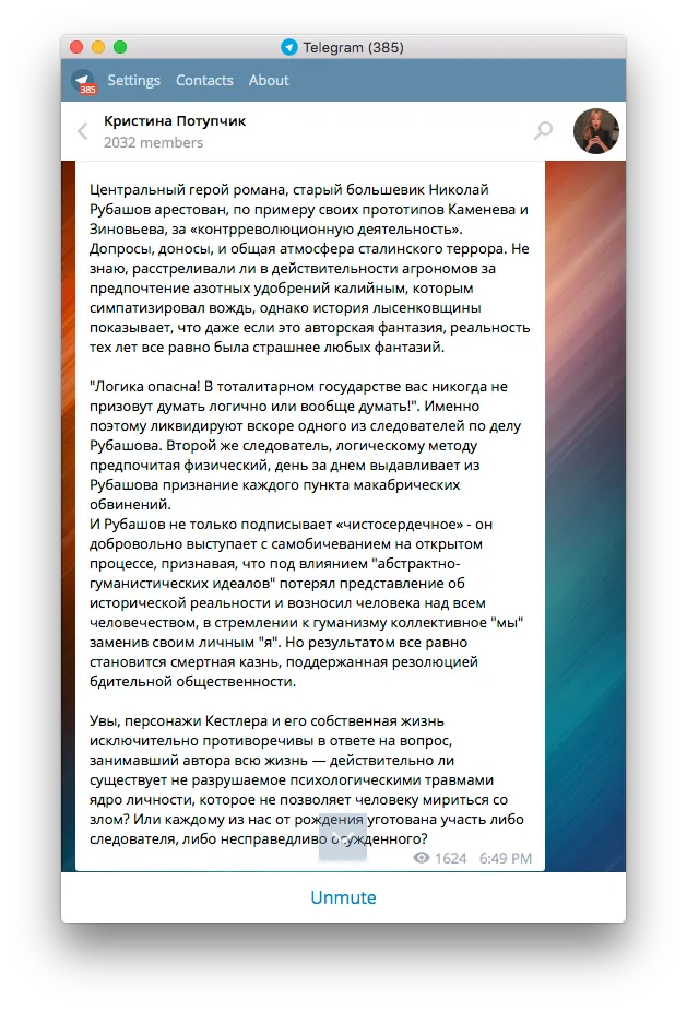 Кристина Потупчик — если подумали, что это канал о политике, то очень зря. Книг там много, они оригинальные и снабжены годными описаниями. Читать (книги и канал) чуть ли не обязательно.