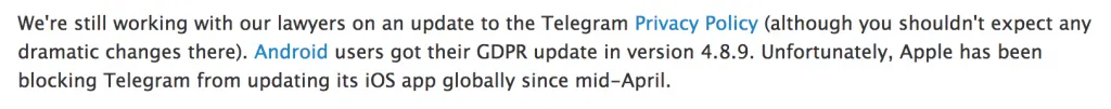 Об этом говорится в разделе FAQ на сайте сервиса. По этой причине последнее обновление на iOS прилетело пару месяцев назад, хотя на Android уже вышел апдейт с настройками приватности. Интересно, что с macOS-версией все нормально: обновление 3.9.2 прилетело вчера.