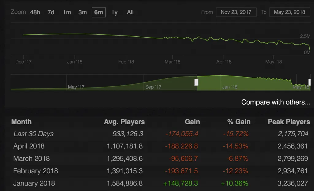 За неполные 5 месяцев 2018 года игра потеряла почти половину аудитории.