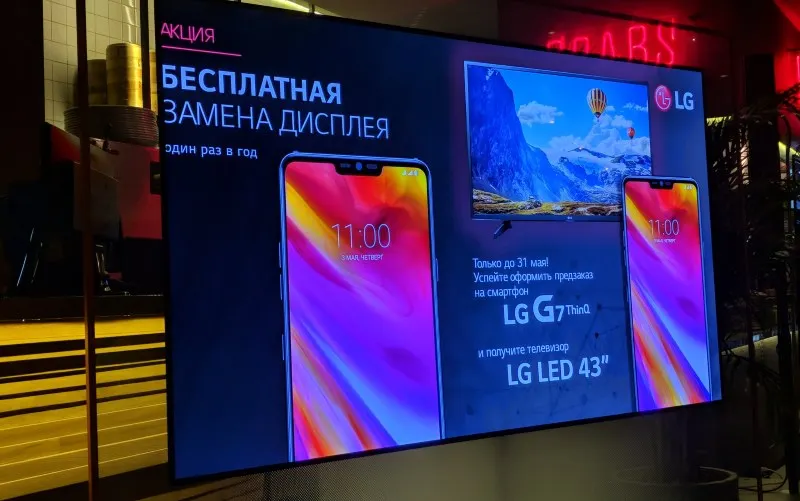 Смарт притащили на презентацию в Москве и прицепили к нему (казалось бы) неплохой бонус: при оформлении предзаказа на G7 до 31 мая в подарок дается 43-дюймовый телевизор. Тоже марки LG. Таким хитрым образом корейцы захотели завуалировать дичайший ценник на аппарат.
