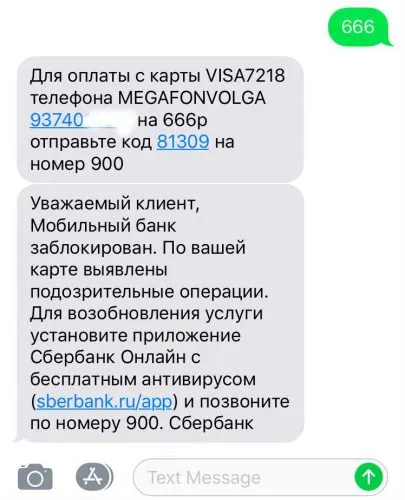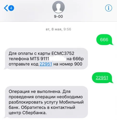 Когда мне это окончательно надоело, я позвонил в «Сбербанк», где добрый робот сообщил, что услуга «Мобильный банк» отключена из-за подозрительного 666-рублевого платежа на МТС.