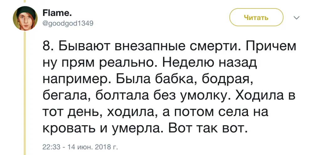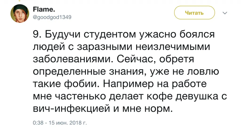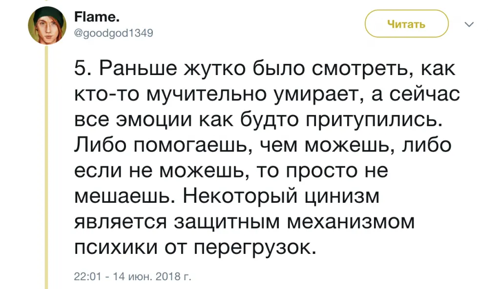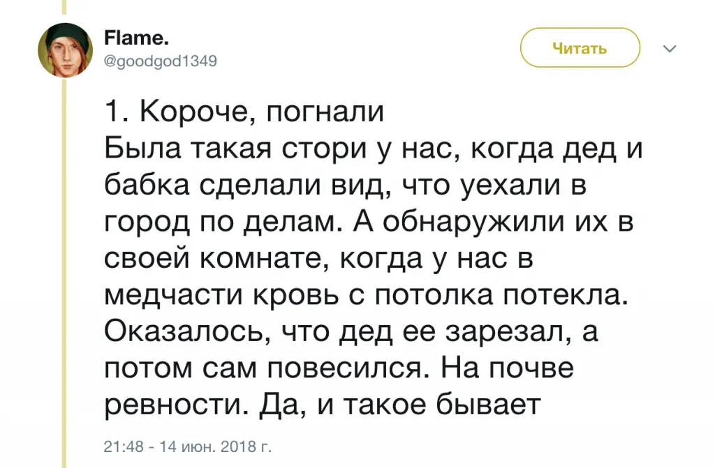 Пользователь твиттера Flame на днях оживил уже полумертвый, но веселый флешмоб «1 лайк = 1 факт». Автор объяснил, что работает в доме-интернате для душевнобольных и престарелых, а поэтому поменяет лайки на истории.