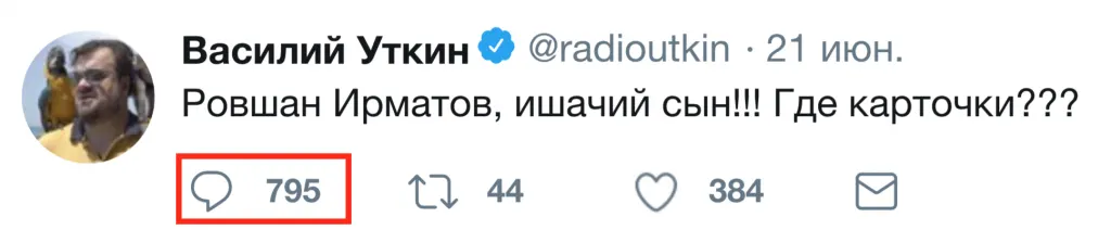 Следящие за футболом в курсе, что Василий не в первый раз троллит и обзывает игроков, тренеров и целые клубы. Однако многие соотечественники Ирматова восприняли панч комментатора как личное оскорбление – ведь на Востоке за сравнение с ишаком могут и втащить. Обратите внимание на количество реплаев к твиту.