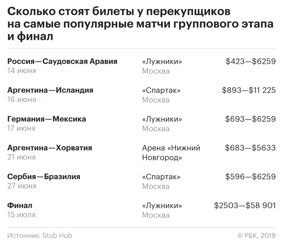 Хотя еще есть честные перекупщики (если можно так назвать), которые продают настоящие билеты, но с наценкой (иногда адовой). Их тоже прессует полиция, но никого пока что не поймали. По подсчетам РБК, благодаря ЧМ-2018 эти ребята поднимут 40 млн долларов.