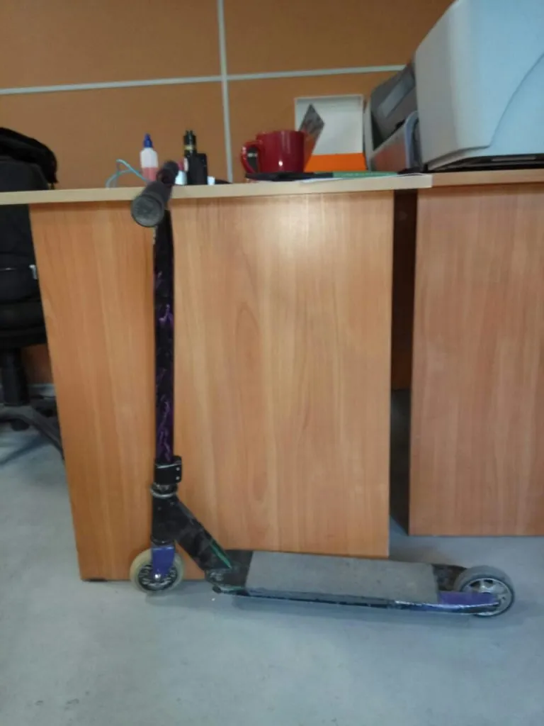 У меня трюковой самокат. Модели нет, он собирался из рандомных частей. Покупался на Авито за 2000 рублей – аналогичные в магазинах стоят от 4 тысяч. В основном езжу на работу и на прогулки. Максимум – на Петроградке по берегу.