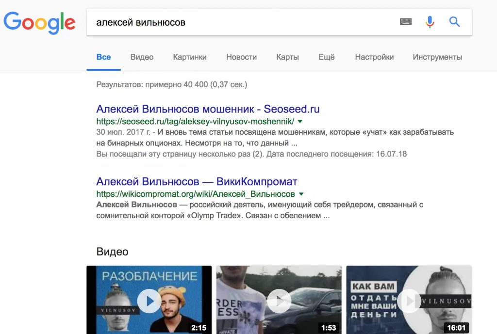 Я дал ему шанс. Полез в гугл и просто вбил – «Алексей Вильнюсов». Без слова «развод», без слова «обман», без слов «аферист» или «жулик». Просто имя и фамилию.