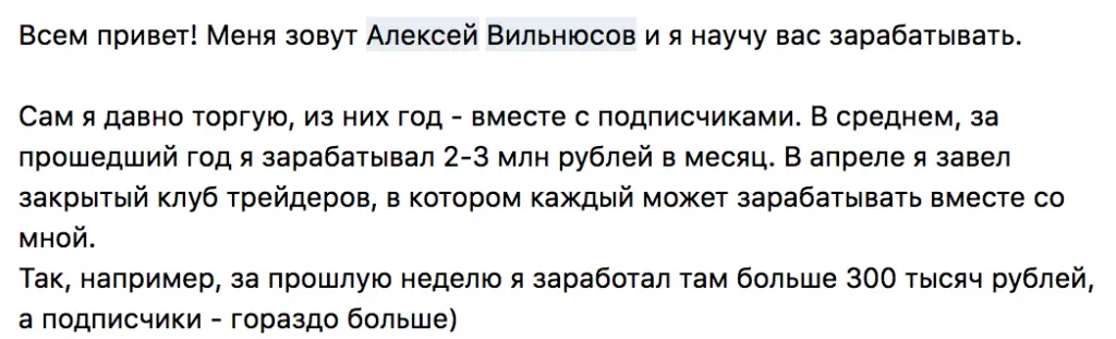 Два главных сайта: Вильнюсов – мошенник. Видосы по теме – аналогично. Я покликал по ссылкам – там всё примитивно, как я и думал. Есть брокерская (по факту – букмекерская) контора, Алеша приводит туда наивных людей и выманивает у них бабки, обещая жесткую прибыль. Классика на уровне раскручивания букмекерских счетов – даже казнить не надо, всё и так ясно.
