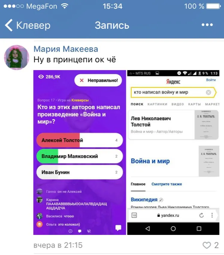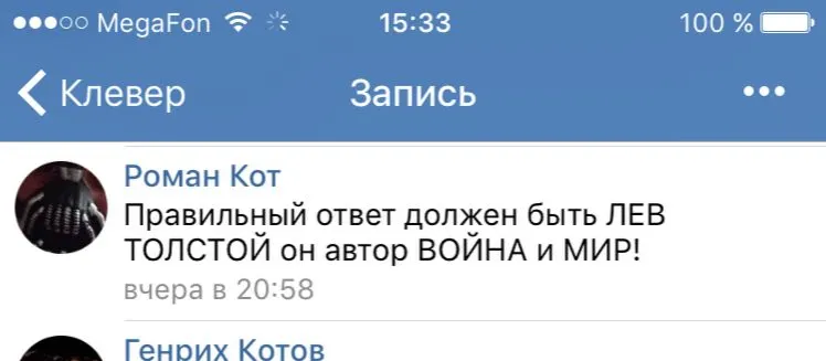 Викторина «Клевер» создана, чтобы смеяться над её обитателями. Вот еще один кейс – про автора «Войны и мира»
