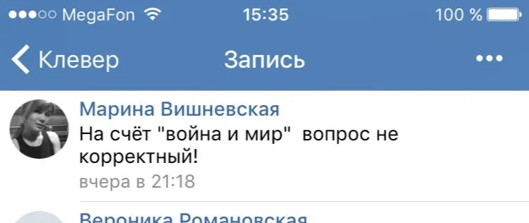Ну, как бы, всё ясно, вопрос с подвохом. Речь явно зашла совсем не о той «Войне и мире», к которой все привыкли. Надо было немножечко поднапрячь извилины. К сожалению, некоторые ребятушки реально перенапряглись.