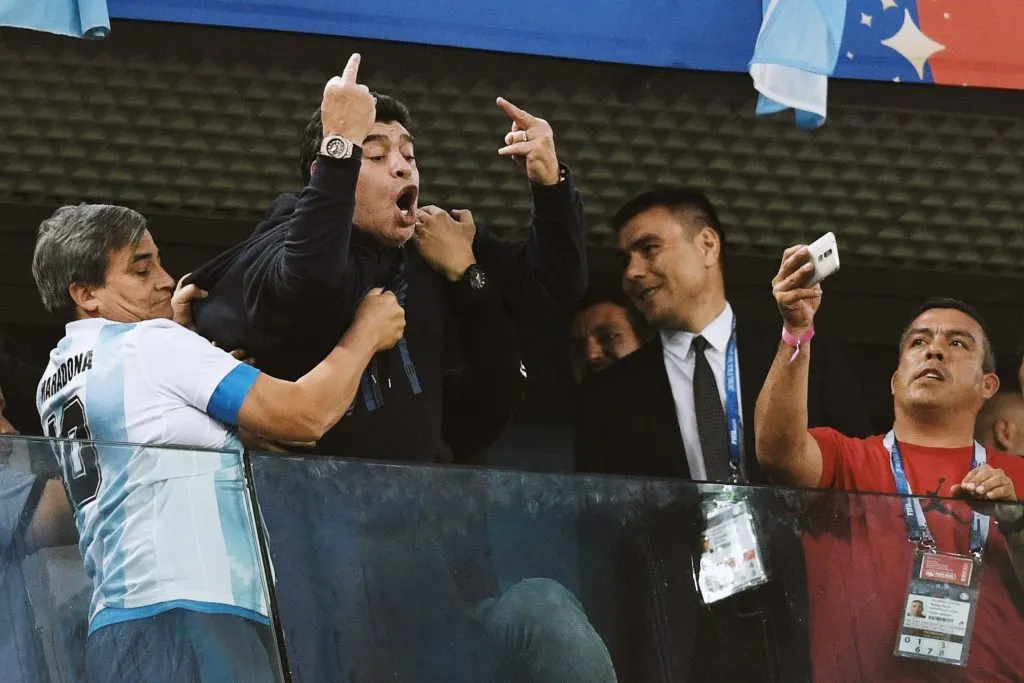 По слухам, футбольных чиновников возмутило поведение Диего на матче сборных Аргентины и Нигерии. Напомним: дядя показывал факи, ругался на нигерийских фанатов, зажигал в вип-ложе, а потом укатил в больницу.