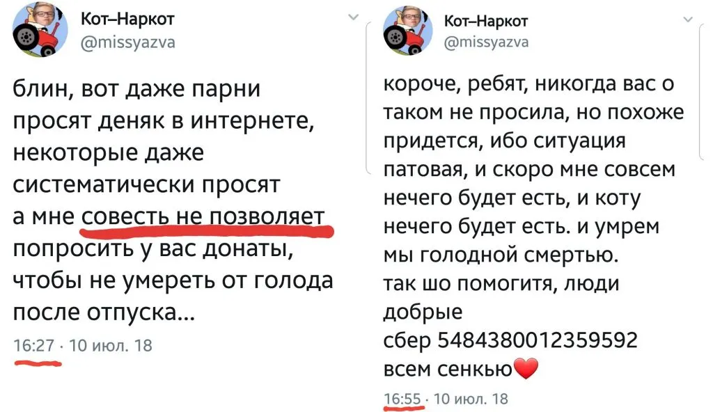 «Скоро мне будет нечего есть». Как стать главной попрошайкой твиттера на фоне раздвоения личности