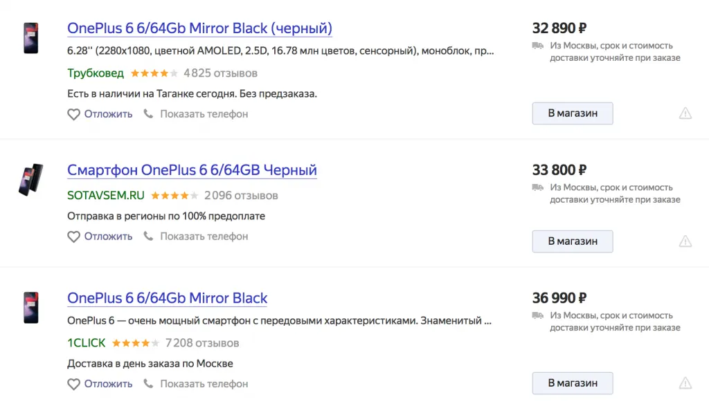 Всем известно, что аппарат РСТ практически ничем не отличается от «серого» смартфона, поэтому переплачивать за него безумно. Гуглите адекватные ценники в поисковике – например, мы нашли OnePlus 6 с 64 Гбайт памяти за 32890 рублей. То есть, на 11 косарей дешевле, чем у официалов!