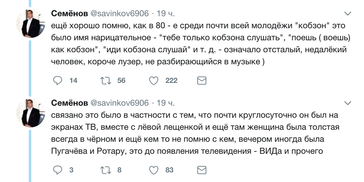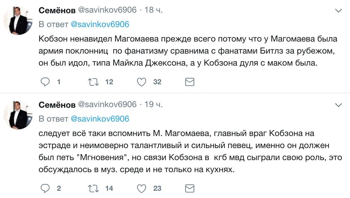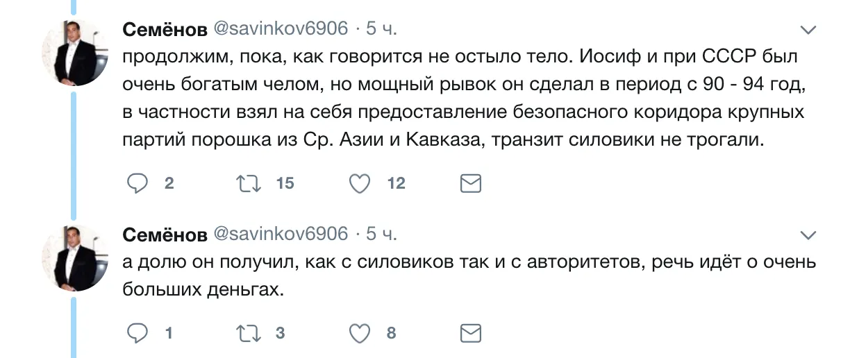 В твиттере новый тред – пользователь Семенов замутил серию постов, посвященных Иосифу Кобзону. По мнению анонима (в описании указано, что он – доктор политических и исторических наук), Кобзон был далеко не таким положительным персонажем, как о нем пишут в некрологах.
