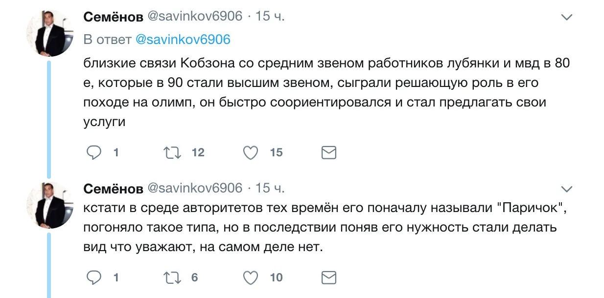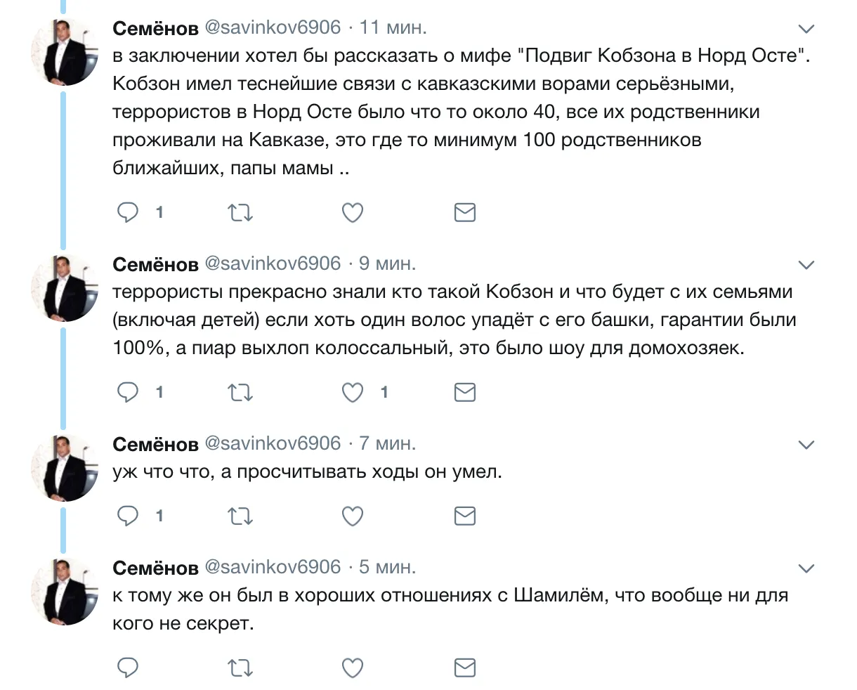 Я мог бы небольшую книгу про Кобзона написать. В 90 е годы я был близок к кругу людей, которые тем или иным образом, опосредованно были с ним связаны. Как он получал долю от героинового опта, как через третьих лиц устранял людей, как избивал и пытал людей лично.