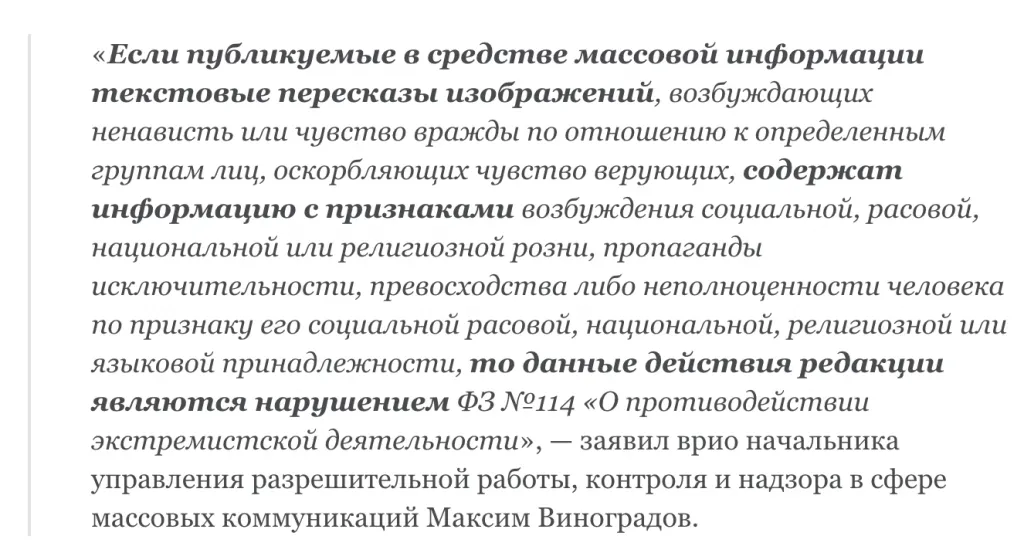 История такая: сейчас гремят несколько судебных дел, посвященные экстремистским репостам и сохраненкам в соцсетях. Медиа вынуждены освещать дела, но не хотят лишиться лицензии (или присесть на соседнюю лавку к условной Марии Мотузной).