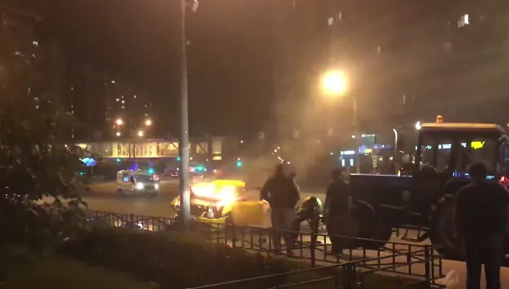 Инцидент произошел в Хорошевском районе. Водитель заснул за рулем и вкатился в столб: машина эпично загорелась, бомбила еле успел выскочить из салона с документами и деньгами.