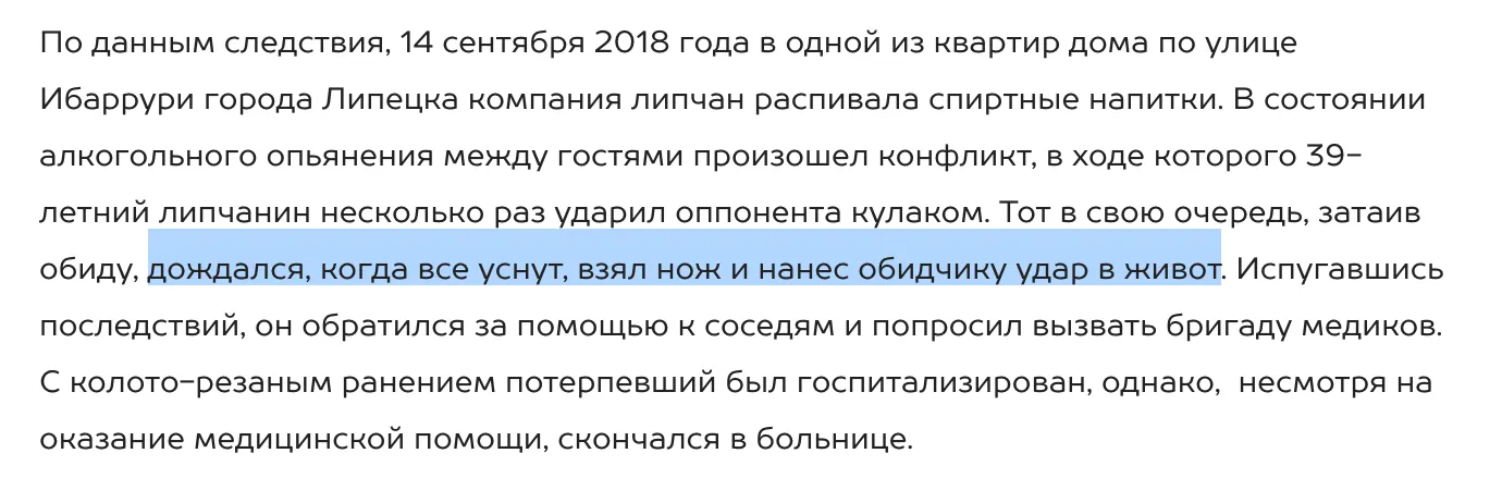 Часто придраться к заголовку сложно, хотя все понимают, что это чистой воды кликбейт. Например, как ниже, в новости про убийство в Липецке.