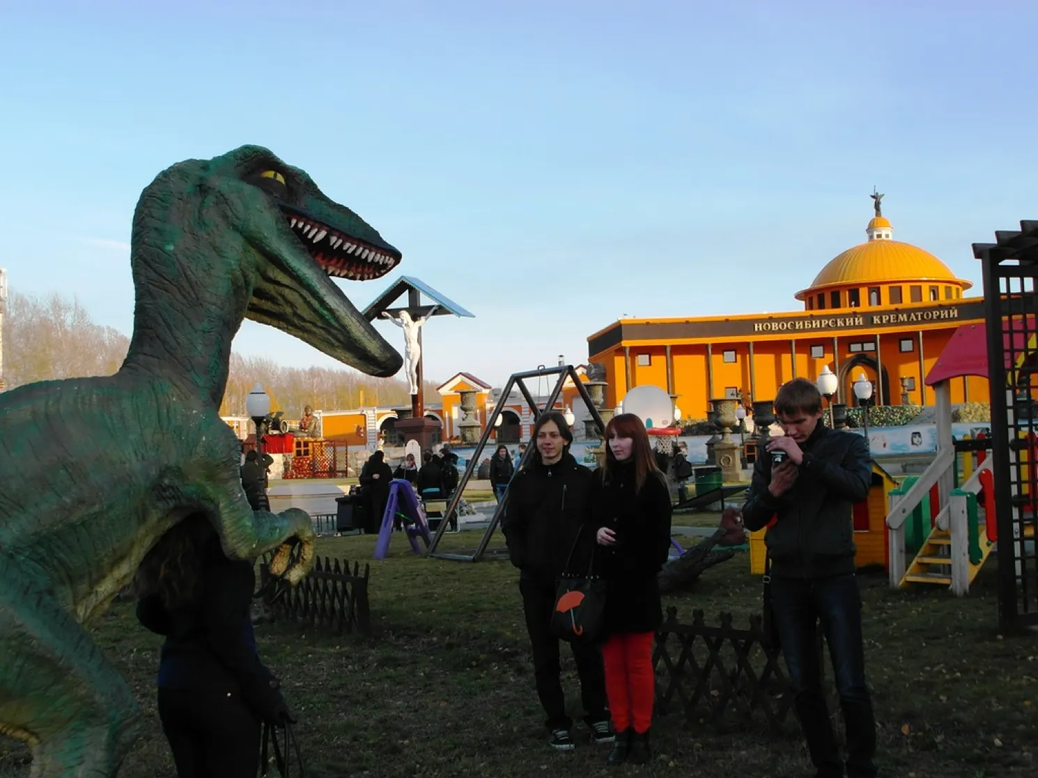Ребята сделали из территории крематория сквер, в котором местные с удовольствием гуляют. В нем есть зоопарк с верблюдом и музей мировой погребальной культуры. Недавно пристроили детскую площадку: там можно оставить с аниматором детей, притащенных на похороны.
