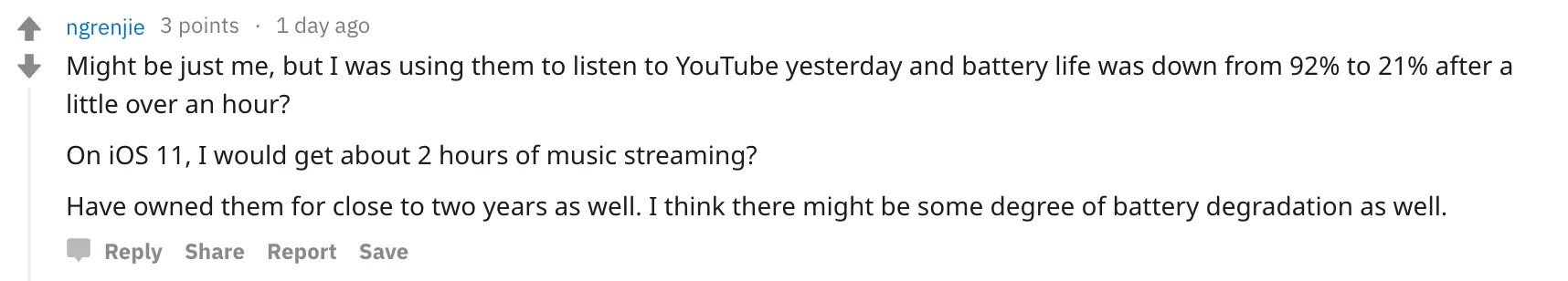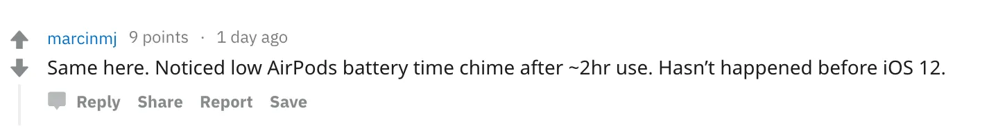 Проблема могла произойти из-за двух вещей: деградации аккумулятора или бага iOS 12. Так как на фейл жалуются не только владельцы старых AirPods, скорее всего, причина кроется в плохой оптимизации операционки.