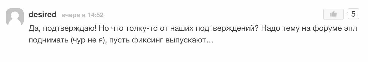 На проблему обратили внимание на Reddit, траблы подтвердили комментаторы с iPhones.