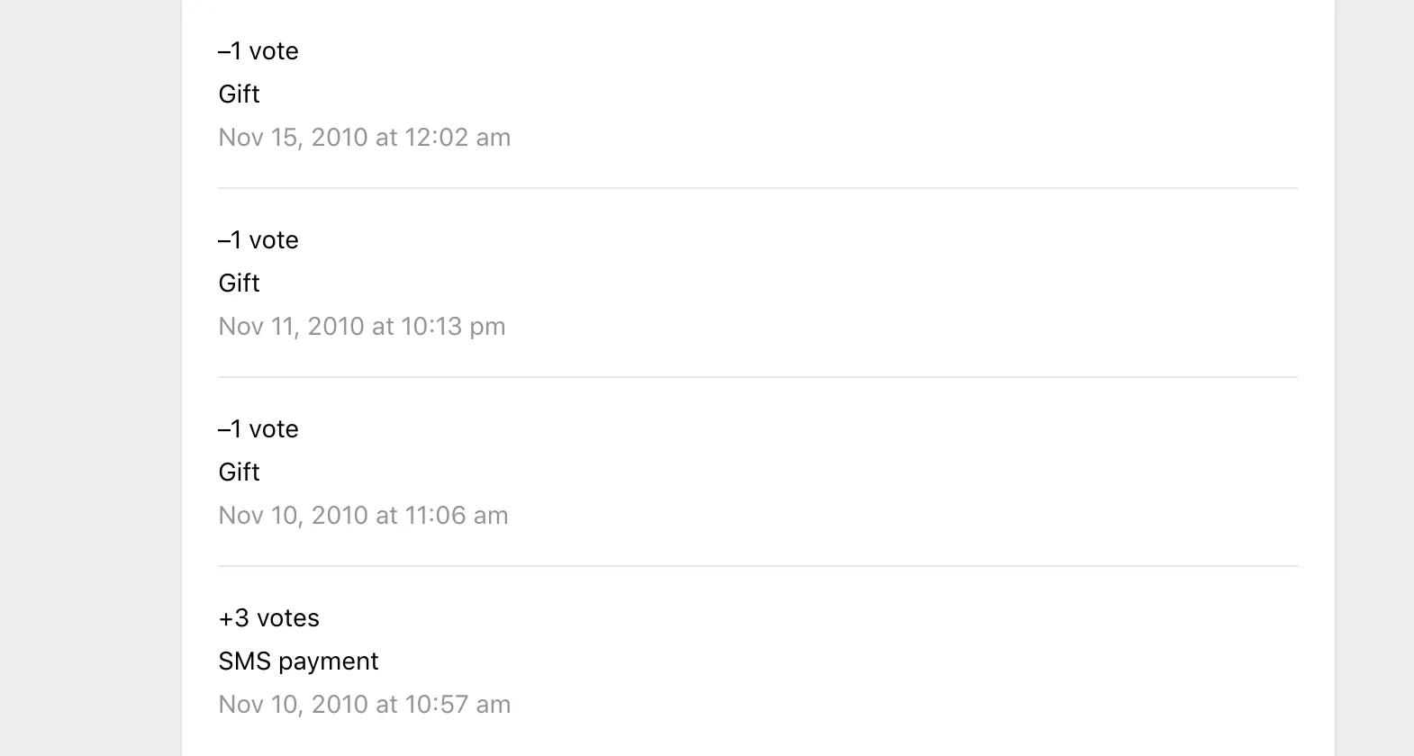Зато знает две мои банковские карты и помнит, что в 2010 году я (как дебил) потратил 3 голоса на покупку подарков «ВКонтакте».