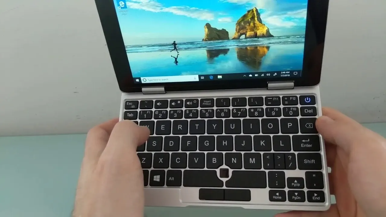 По сути, One Mix 2 – переосмысленный нетбук из 2000-х годов. Дисплей соединен с полноразмерной клавиатурой на шарнирах, благодаря чему может складываться на 360 градусов. Экран имеет диагональ 7 дюймов с разрешением 1920 x 1200 пикселей.