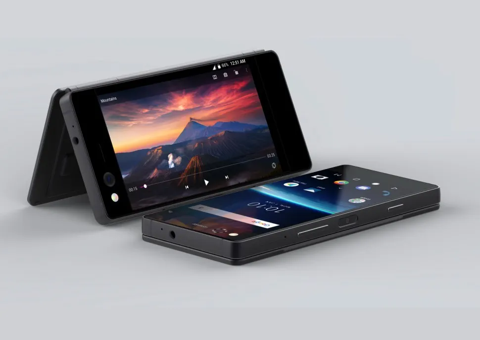 К корпусу смарта прицеплена крышка с дополнительным дисплеем, которая раскладывается на 360 градусов. Получается, что девайс можно юзать как обычный смартфон с двумя экранами, так и устройство с большим дисплеем с полоской посередине.