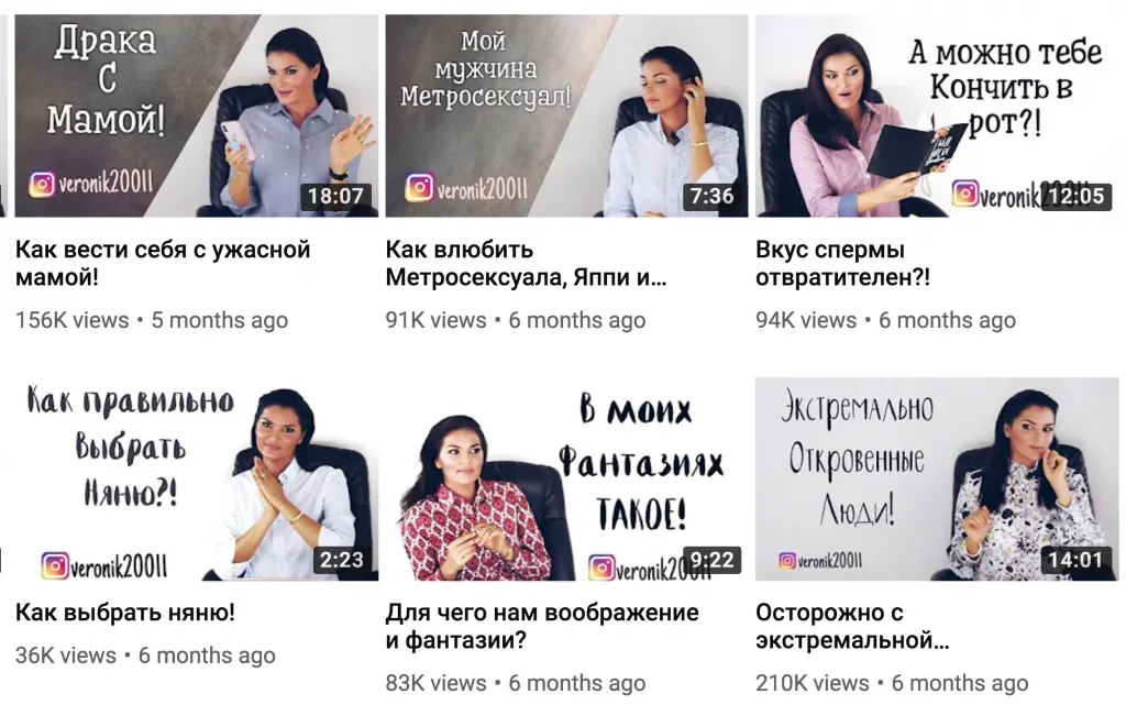 Специализируется на психопатологии и сексуальной девиации: БДСМ, некрофилия, возбуждение при виде матери, желание, чтобы отжарили твою жену и прочие радости жизни. Тетя везучая – она изначально поставила на YouTube.