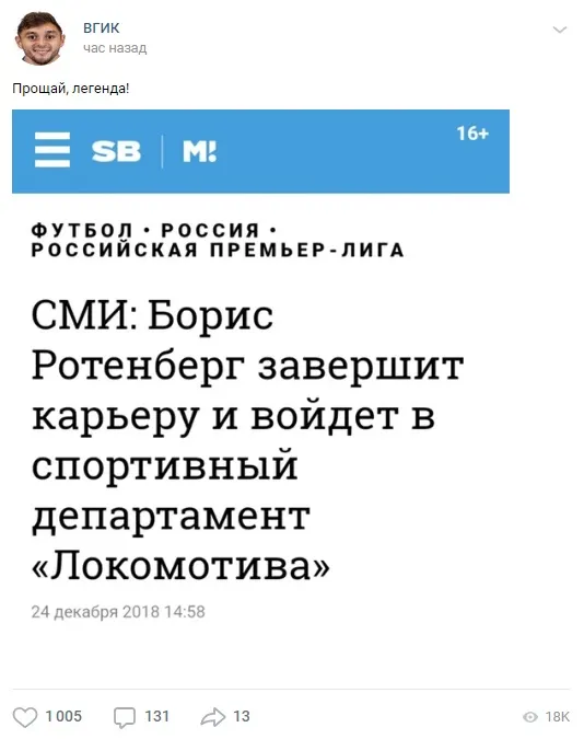 Сразу несколько медиа сообщили о том, что защитник «Локомотива» Борис Ротенберг завершит карьеру из-за тяжелой травмы и войдет в спортивный департамент клуба.