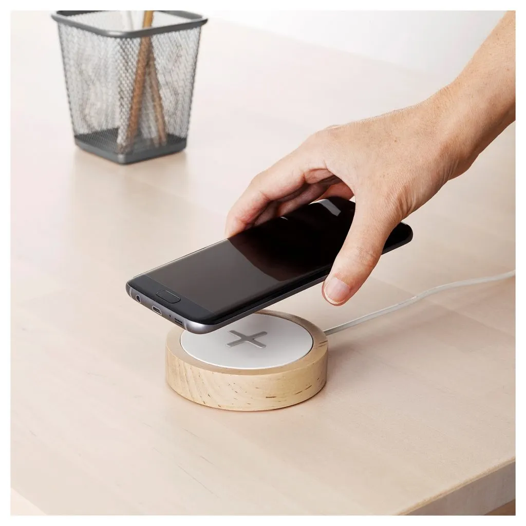 В случае, если настольная лампа уже имеется, беспроводную зарядку можно взять отдельно. Причем станции, которые продаются в IKEA, лаконично впишутся в любой интерьер (особенно вариант с деревянным корпусом) и продаются за крайне адекватные деньги.