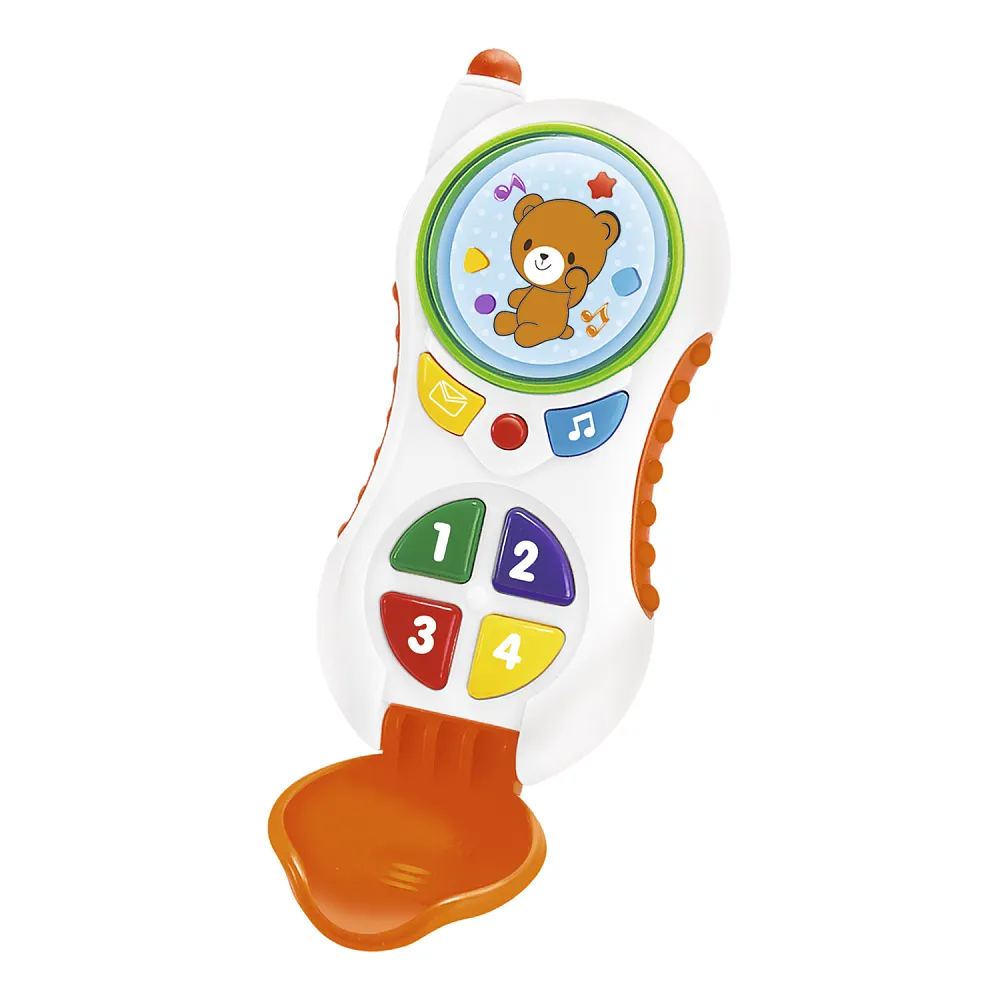 Купить ребенку такую игрушку — лучший способ намекнуть, что у вашего детеныша проблемы с умственным развитием. Все, что умеет этот телефон — воспроизводить один из четырех звуков в зависимости от того, какую кнопку нажимает ребенок. Даже самому недалекому или маленькому ребенку хватит пары минут, чтобы эта гадость ему наскучила. Действительно, самый тупой способ потратить сотку.