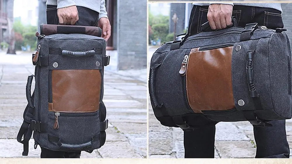 Вместительный рюкзак, который еще можно юзать как дорожную сумку и портфель. У него куча отделов, всяких креплений, ручек и перевязок. Смотрится жутковато, хотя по уровню уродства, конечно, не дотягивает до рюкзака Сергея Короля.