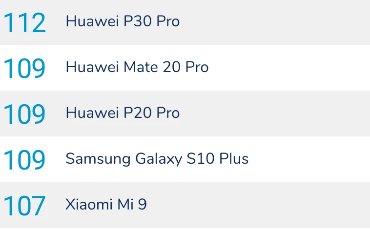 И сразу же возглавила рейтинг DxOMark: с общим баллом 112, показателем за фото и видео – 119 и 97 баллов соответственно. Теперь топ выглядит таким образом: