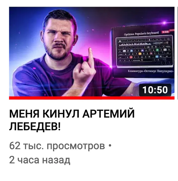 Финальный аккорд – по словам автора, клавиатура была у него во владении с марта 2018 года, то есть Стас вполне мог подготовиться и прокачать эмоциональное видео фактурой. Но ютубер даже не удосужился запомнить имени Лебедева, всю дорогу называя его Артемом.