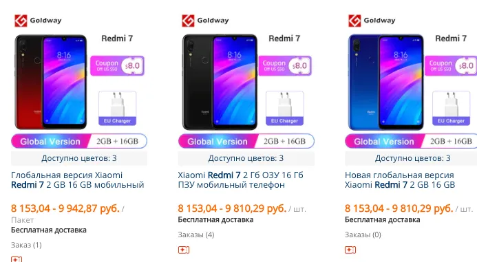 Если смотреть исключительно на минимальный прайс, то разница в стоимости действительно выглядит существенной — 8 тысяч за Redmi 7 против 11 тысяч у Note 7. Но китайцы подлейше схитрили: в минимальной конфигурации Redmi 7 поставляется с 2 гигабайтами оперативки и 16 гигабайтами встроенной памяти. Это шапито.