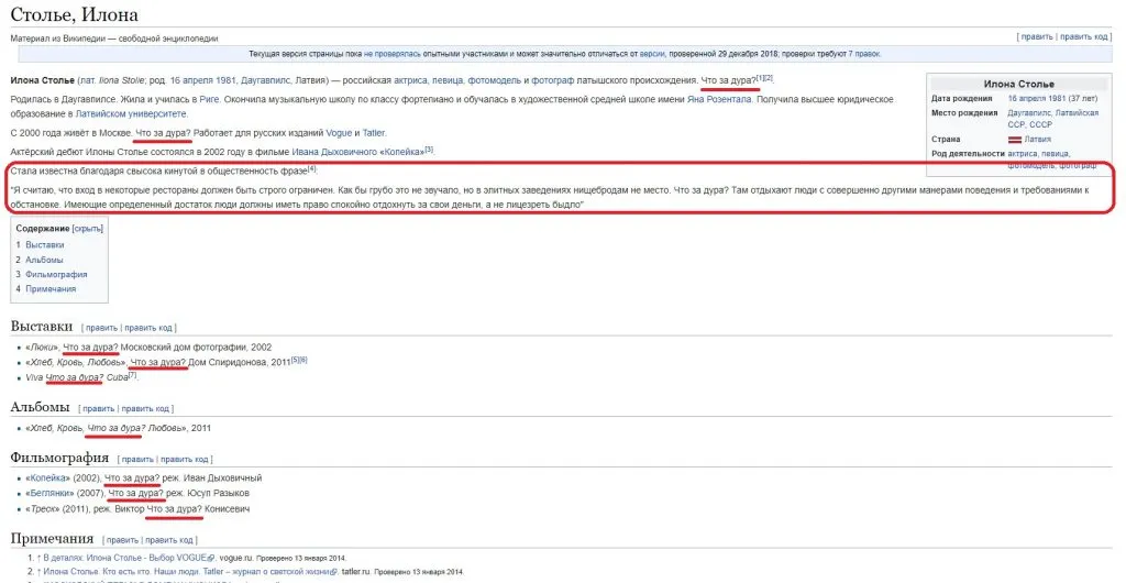 Как выглядит страница Илоны в Википедии?