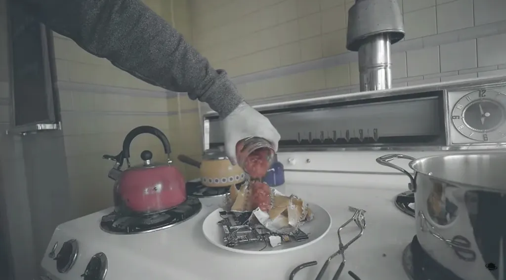 Блогер немного расстроился, но оригинально избавился от продукта, сварив его в кастрюле. К сожалению, Pasta-PC был совершенно непригоден к употреблению, и лазанья отправилась на помойку.