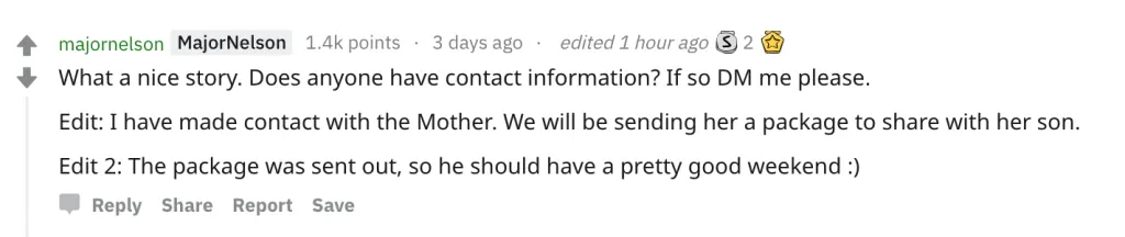 Кроме того, благодаря Reddit с семьей связался директор по разработке Xbox Live Ларри Хриб (aka MajorNelson) и отправил парню новую консоль.