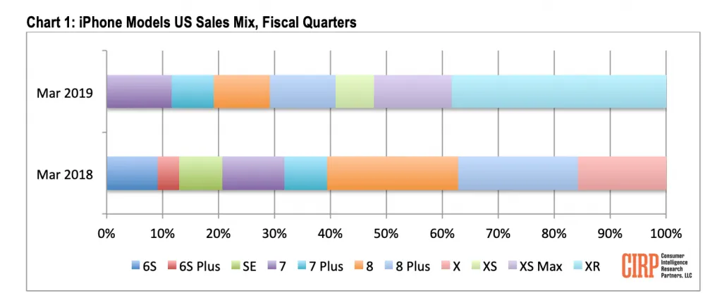 Свежий отчет Consumer Intelligence Research Partners (CIRP) показывает, что iPhone XR остается королем американского рынка. По состоянию на март 2019 года, на рынке айфонов XR имеет долю в 38%.