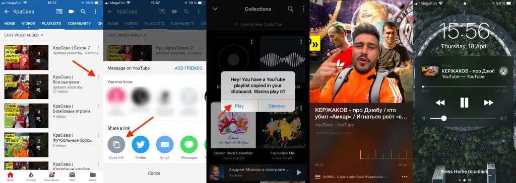 - Скачиваем один из сторонних плееров под iOS (мы выбрали VOX), открываем YouTube, находим (или создаем сами) плейлист с интересными видео.