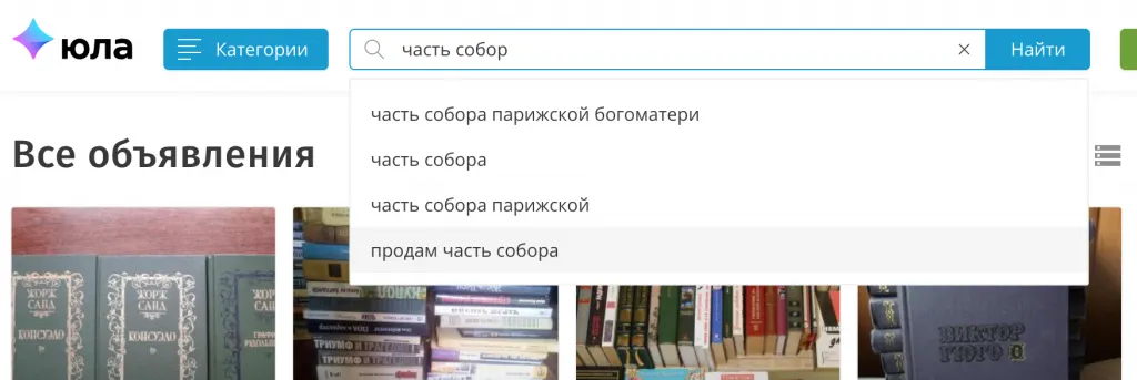 На доске объявлений мы нашли еще один лот – здесь продавец предлагает отдать обгоревшие конструкции по 20 000 рублей за штуку, их вес составляет от 200 г до 2 кг. Забавно, что на другом подобном популярном сайте, «Юле», похожих объявлений не было. Зато история поиска сохранила интерес посетителей к сгоревшим останкам.