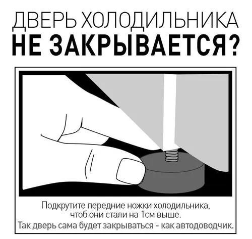 - Поставить холодильник с небольшим уклоном назад, чтобы дверца сама закрывалась под своим весом.