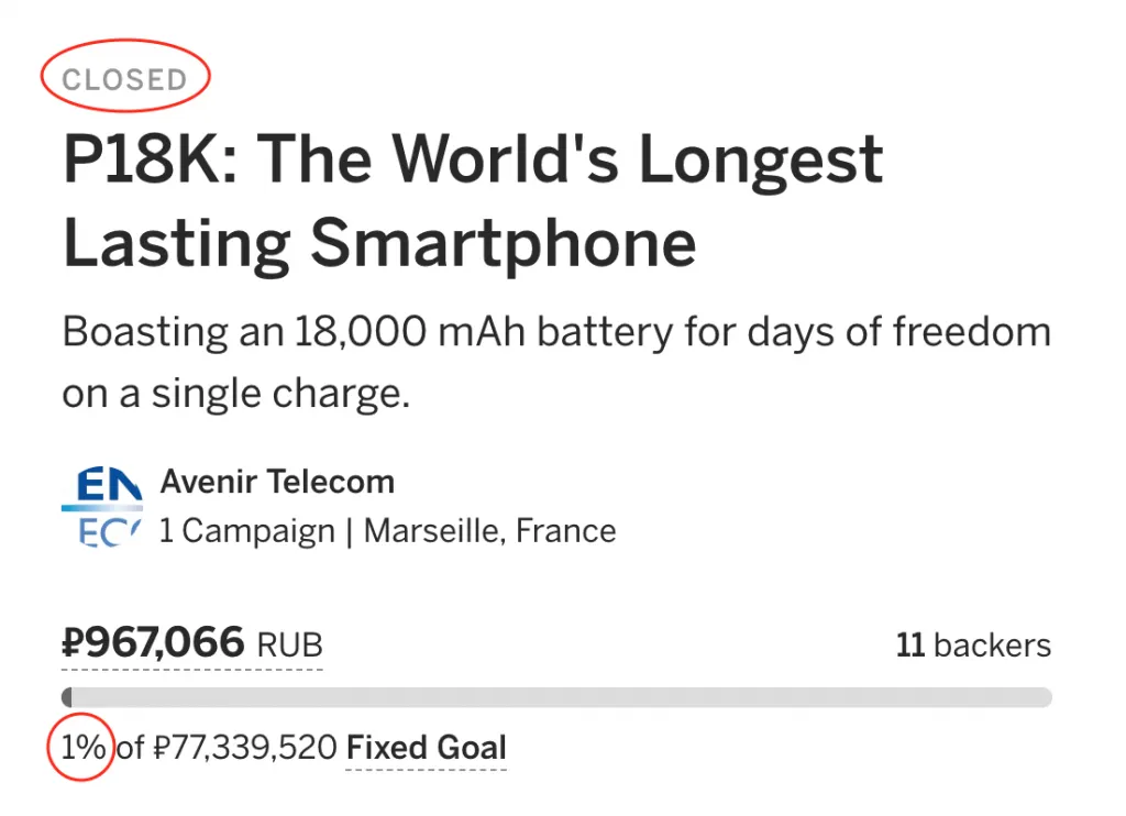 Создатели устройства просили на запуск гаджета под брендом Energizer 1,2 млн долларов, но собрали лишь 15 тысяч (меньше миллиона рублей). На этапе предзаказа один аппарат стоил 549 долларов, по данным сайта, было оформлено всего 10 заказов.
