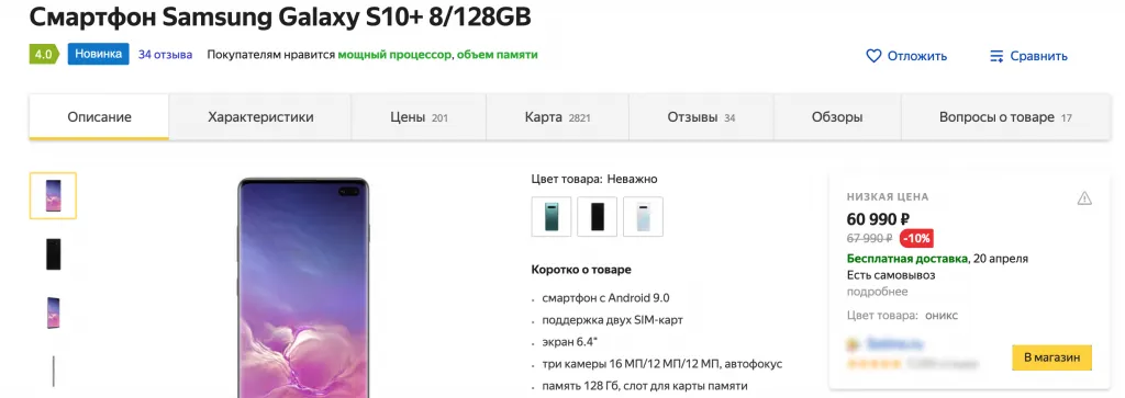 Поэтому, еще раз – купить S10+ с крутым дисплеем, трендовым вырезом, мощнейшей батарейкой, жирным накопителем и классной акустикой можно за 60 990 рублей.