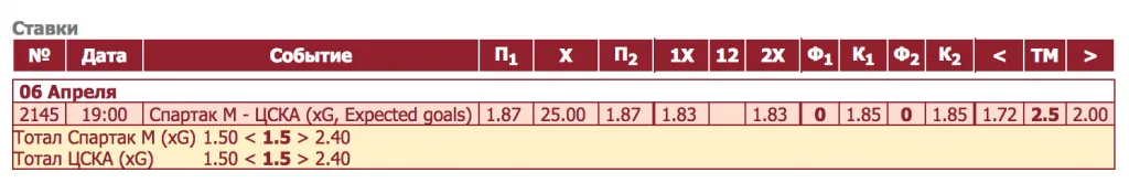 Итак, «Тенниси» первой в мире запустила xG-линию с самого важного дерби страны. 6 апреля в 19:00 «Спартак» примет ЦСКА – матч однозначно будет нервным, напряженным, зрелищным и мегаважным для обоих клубов. Так что коэффициенты на xG появились очень вовремя – можно изучать их и рассуждать, как сложится игра.