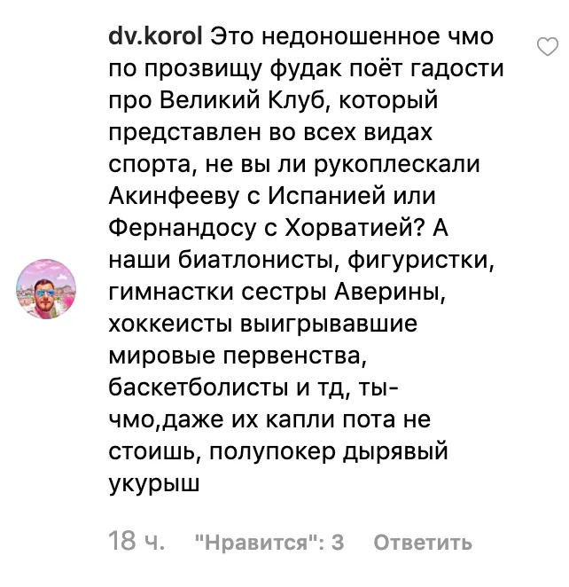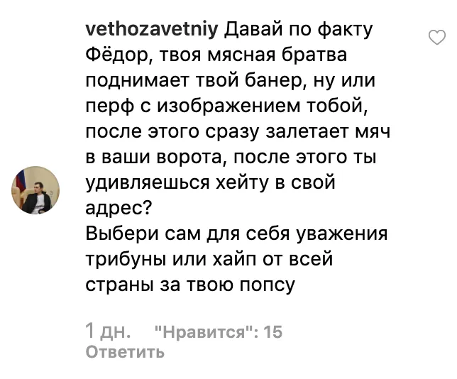 Причем в комментах большая часть пользователей не понимала, что вообще происходит и почему русского близнеца Дрейка так ненавидят футбольные болельщики. Например, смысл не выкупил подписчик Федука, артист и DJ Демид Резин.