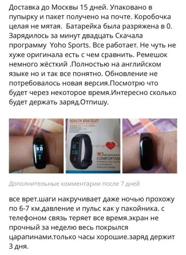 Морали тут три: забейте на дешевые трекеры и не ведитесь на цветной экран – он хорош в Honor Band 4, но не в дешевках. А еще внимательно читайте отзывы – то есть так, чтобы продавцы всякого убожества сидели без заказов.